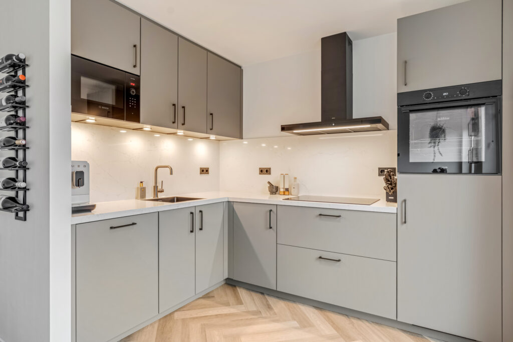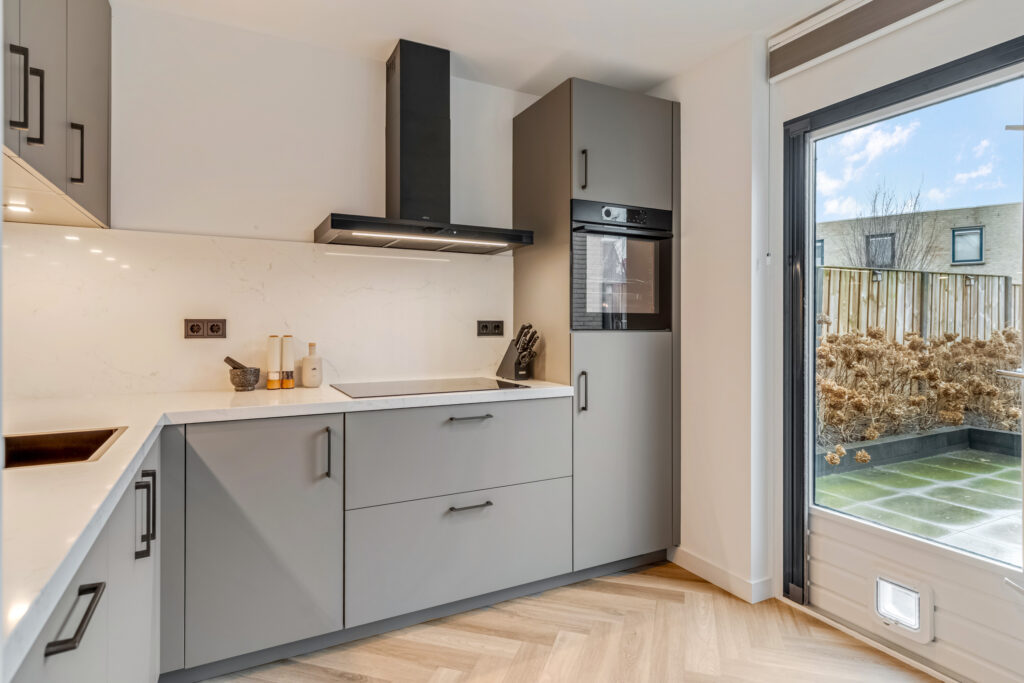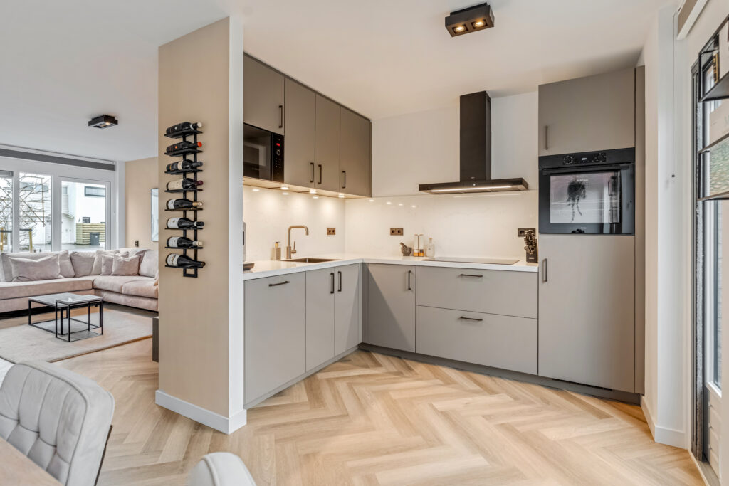 – prachtige keuken, visgraatvloer, nieuwe binnendeuren en strak stucwerk