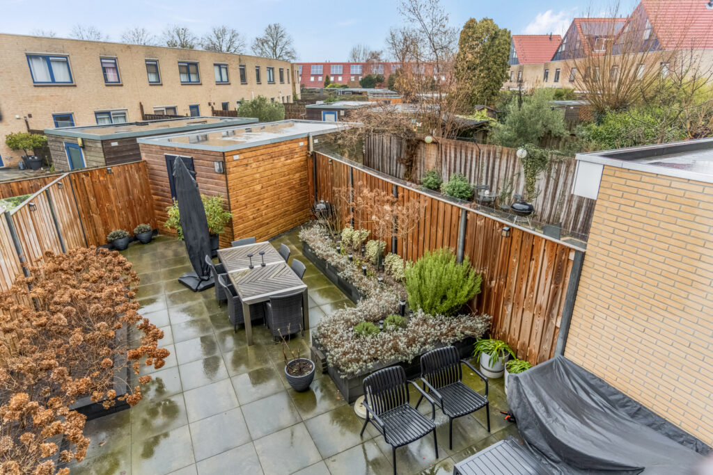 Niet alleen intern is vernieuwd, ook het buitenleven is zeer aangenaam. Rondom de woning is in 2023 alles vernieuwd: voortuin, zijtuin én achtertuin zijn opnieuw aangelegd. Nieuw straatwerk, nieuwe schuttingen, poort, plantenbakken en beplanting maakt het geheel klaar voor de komende jaren.