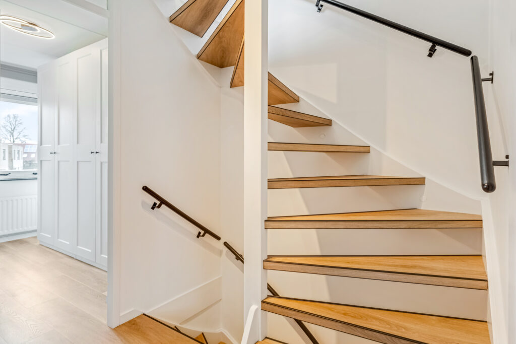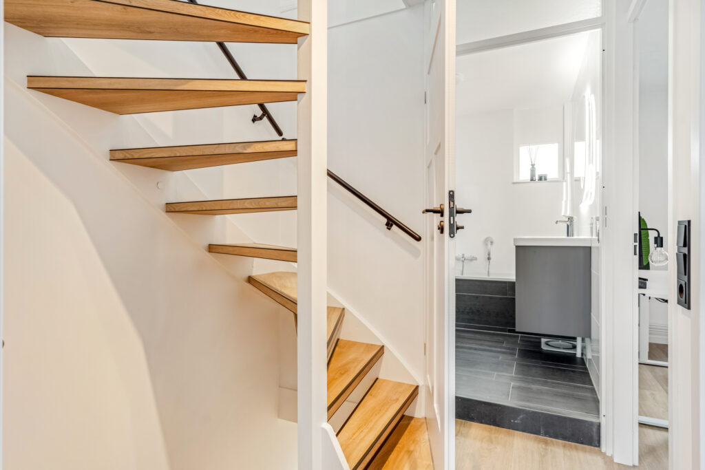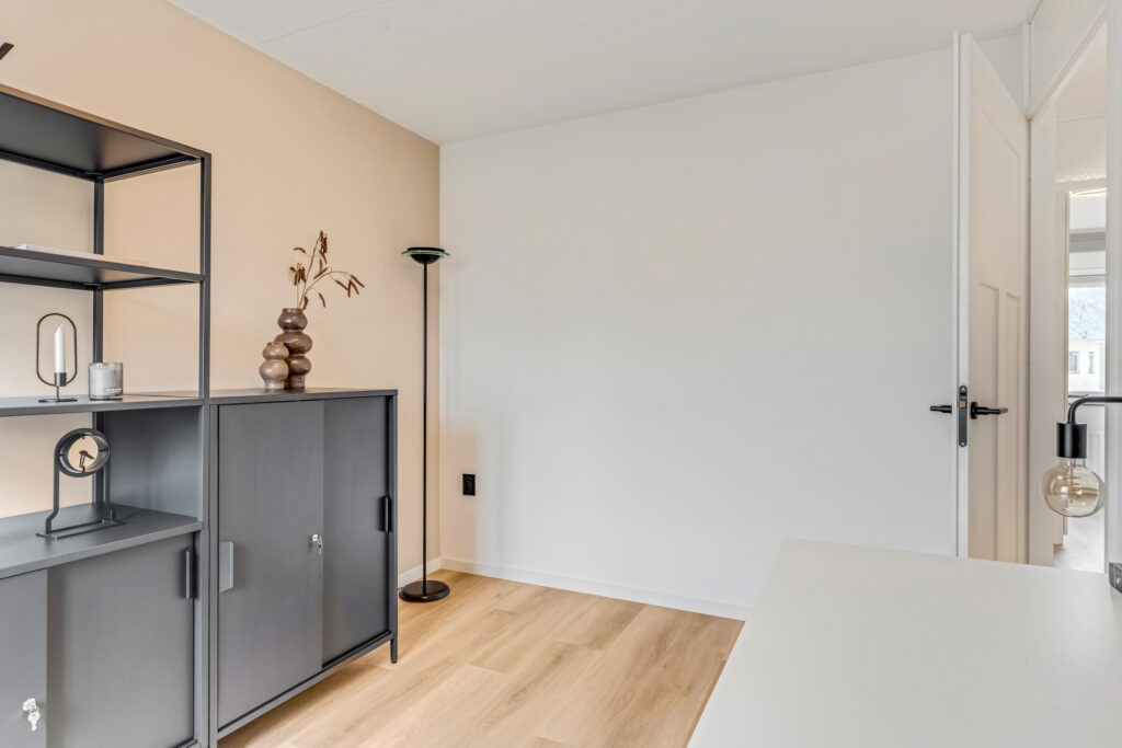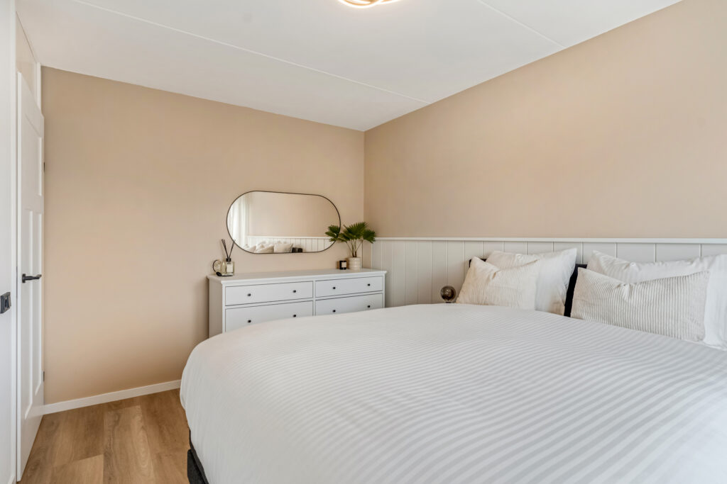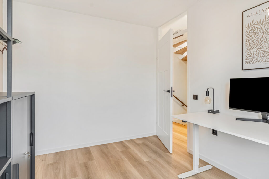 Ook de eerste verdieping behoef je niets meer te doen. In 2025 zijn de wanden in beide grote slaapkamers gestuct. Een mooie PVC-plankenvloer is gelegd en zijn zowel de trappen naar beneden als boven zijn gerenoveerd en bekleed.