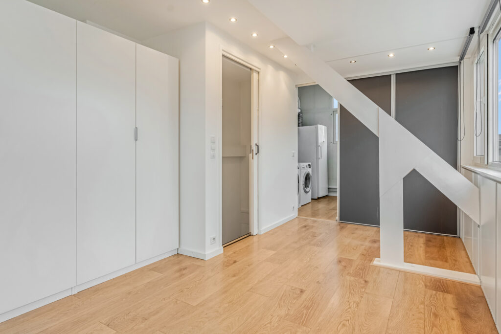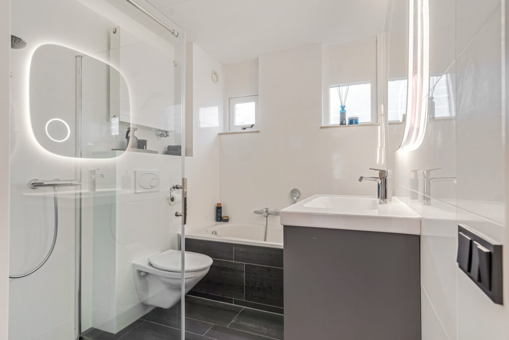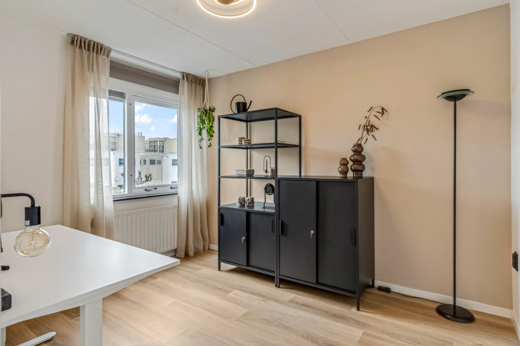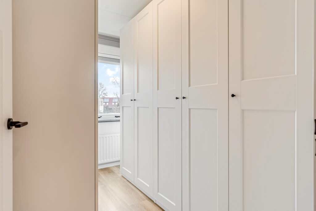 De badkamer is bovendien vernieuwd met een nieuwe douchewand, wastafel, meubel en spiegel. Extra fijn: de kastenkamer is voorzien van strakke PAX-kasten die eventueel kunnen worden overgenomen.