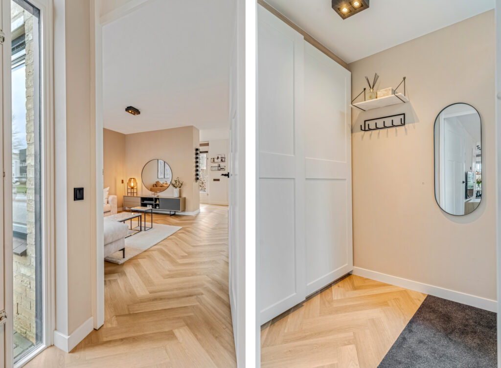 Ook hier ontbreekt het niet aan de finishing touch, want alle binnendeuren zijn vervangen in dezelfde luxe stijl als beneden.