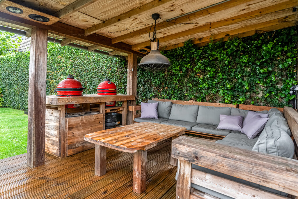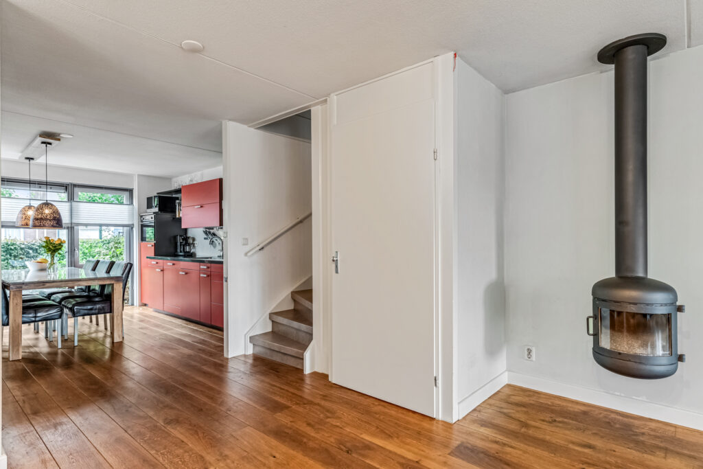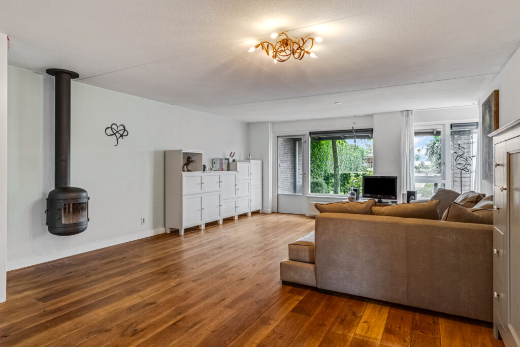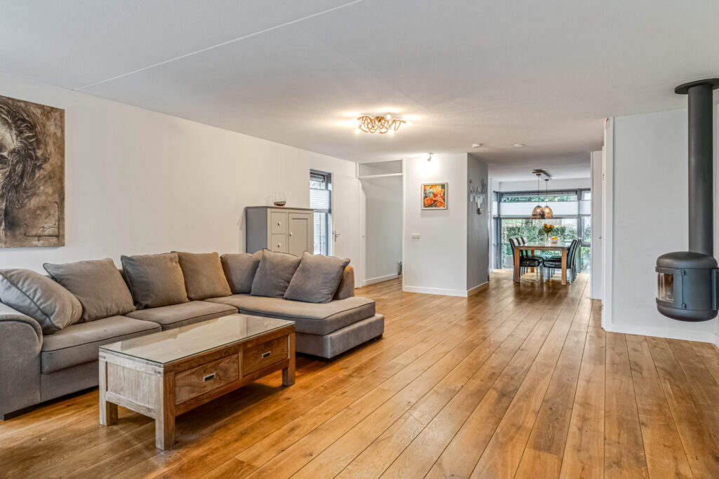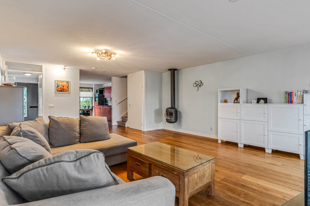 De riante woonkamer beschikt ook nog eens over een houtkachel: heerlijk & gezellig voor de koude avonden in het najaar en de winter.