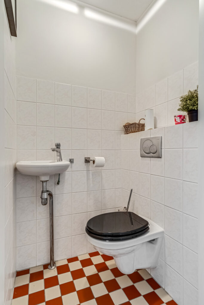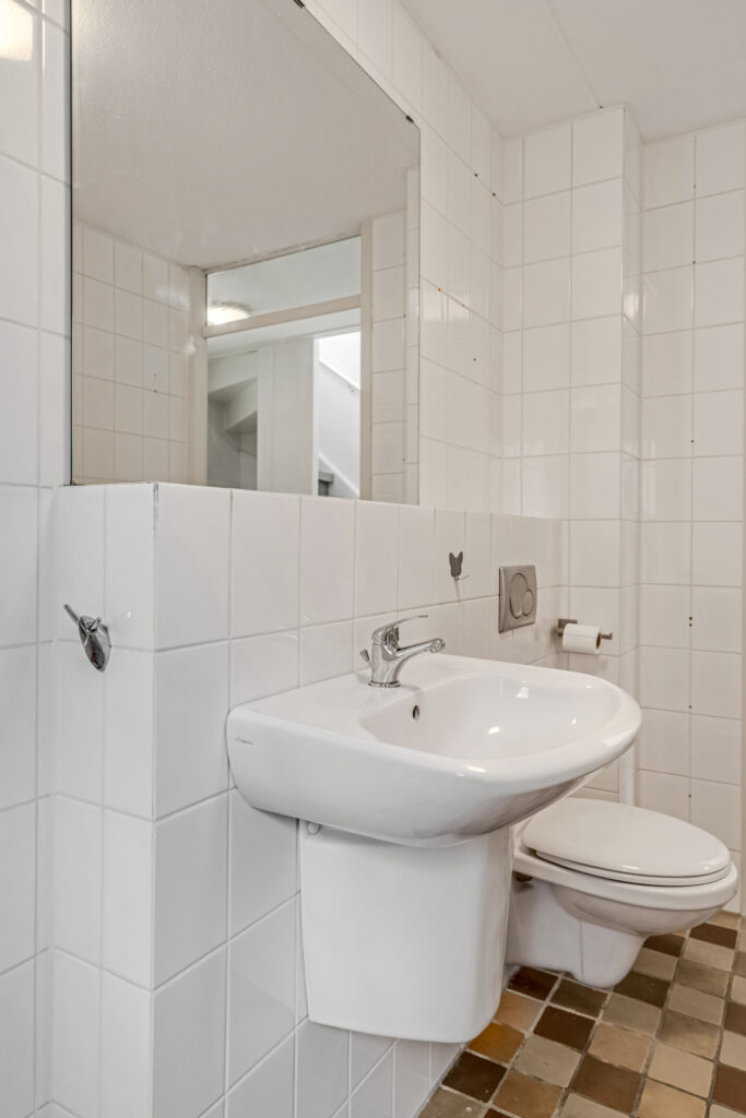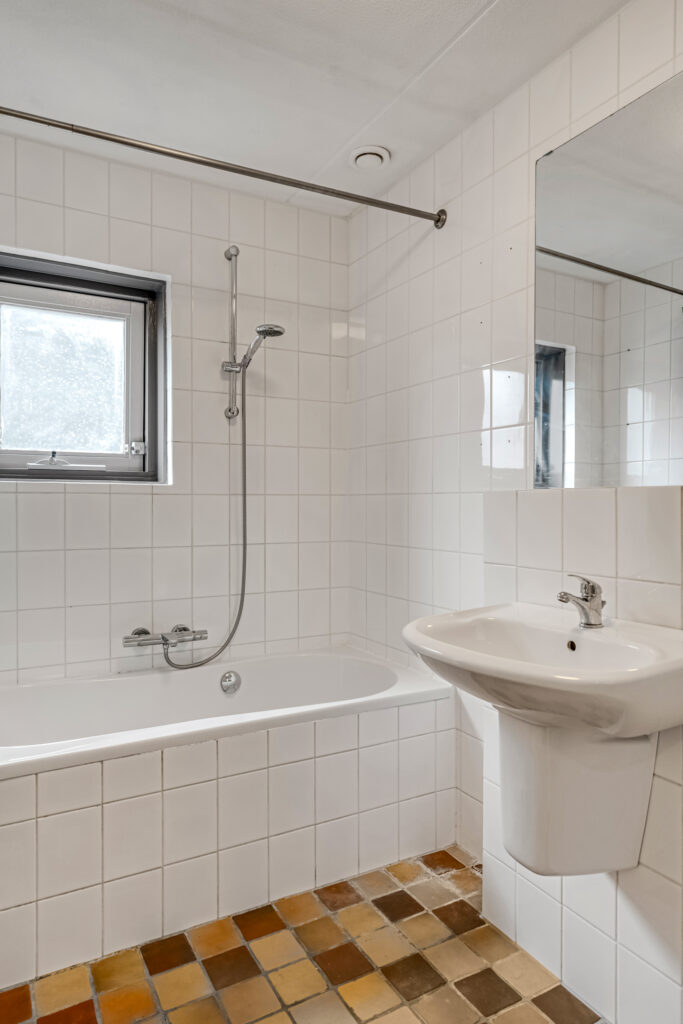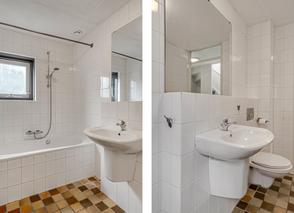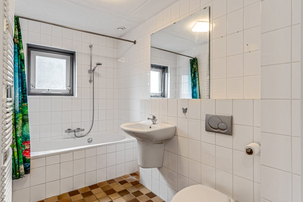overloop, 3 recht opgetrokken slaapkamers en badkamer met ligbad met douchevoorziening, vaste wastafel en 2e toilet.