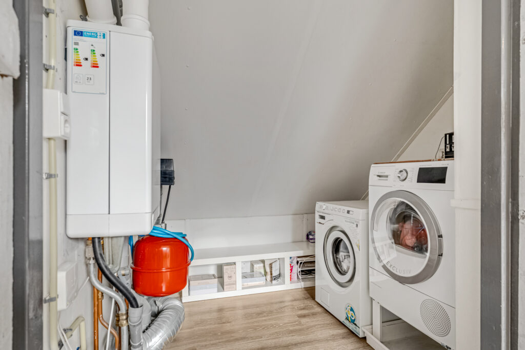 via vaste trap naar 4e slaapkamer en witgoed ruimte alsmede c.v. opstelling.