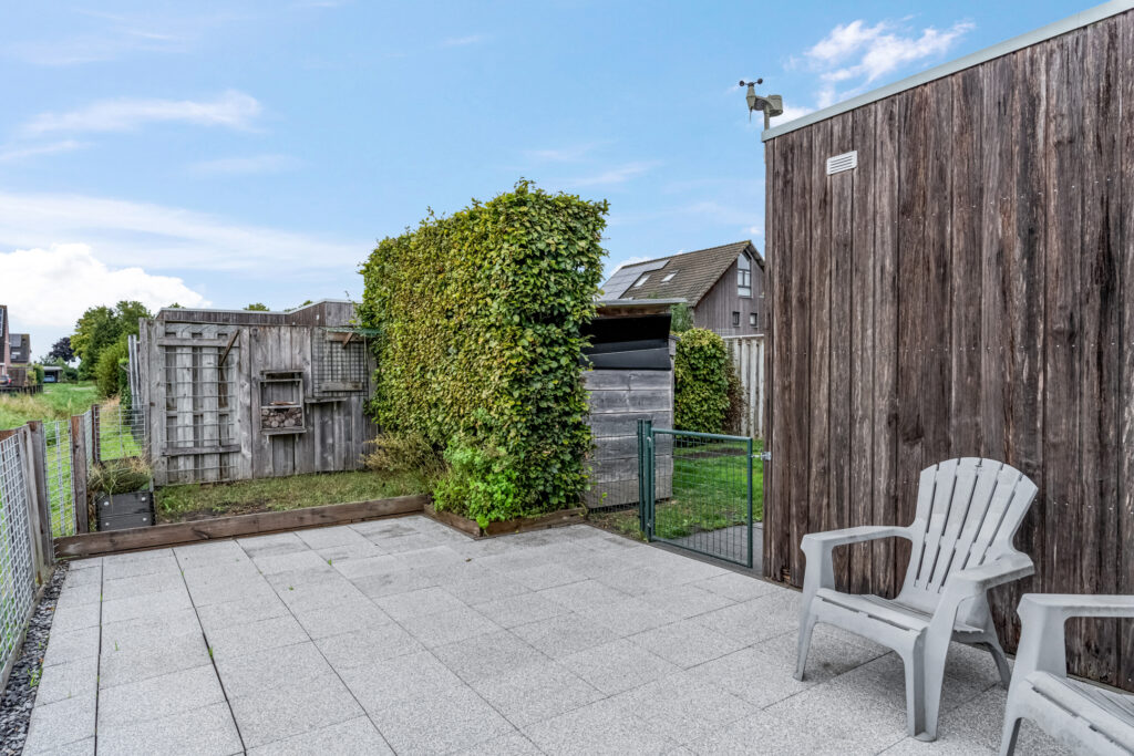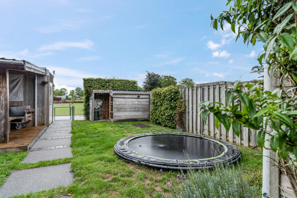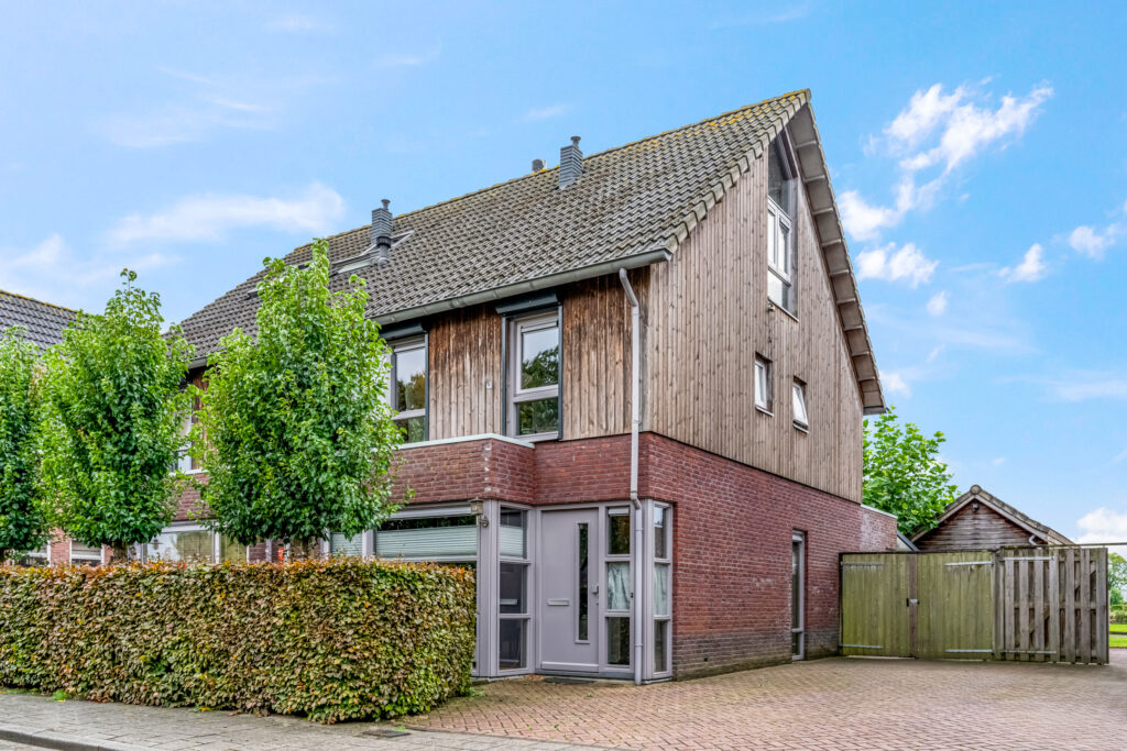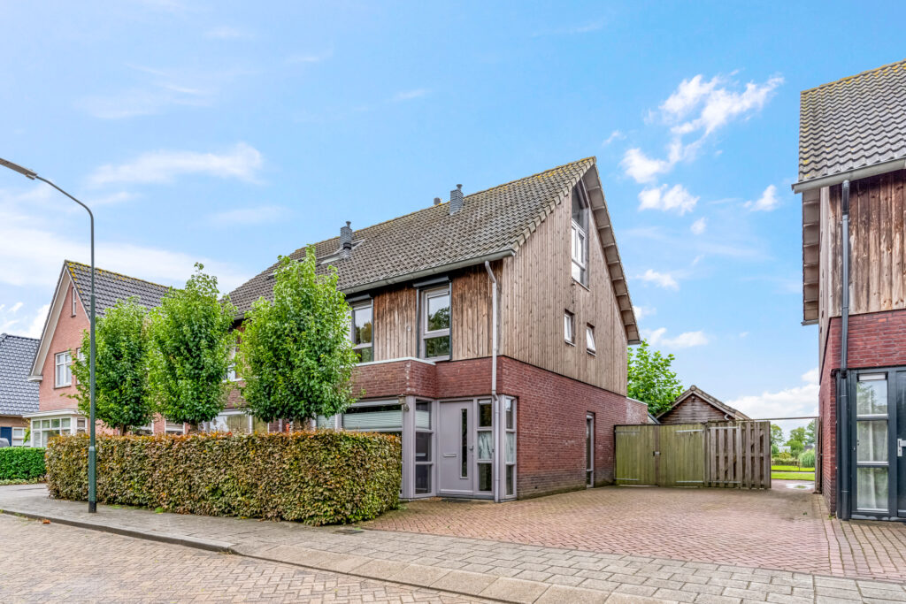 In heerlijk rustige woonomgeving gelegen tref je deze royale twee onder een kap woning met garage, oprit en flinke zonnige achtertuin grenzend aan weiland.