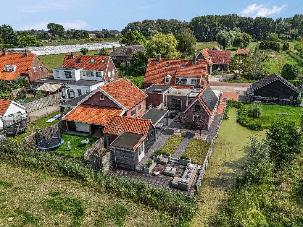 de tuin is een echte eyecatcher van de woning. De tuin is allereerst fraai aangelegd. Aan de voorzijde is een ruime oprit en aan de achterzijde zijn meerdere schuren aanwezig, waardoor er voldoende berg- en hobbyruimte is. De veranda met glazen wanden maakt het plaatje compleet. Aan de rand van het perceel aan de achterzijde is een rustplek gemaakt, waar heerlijk in alle rust kan worden gezeten met enkel zicht op de groene landerijen.