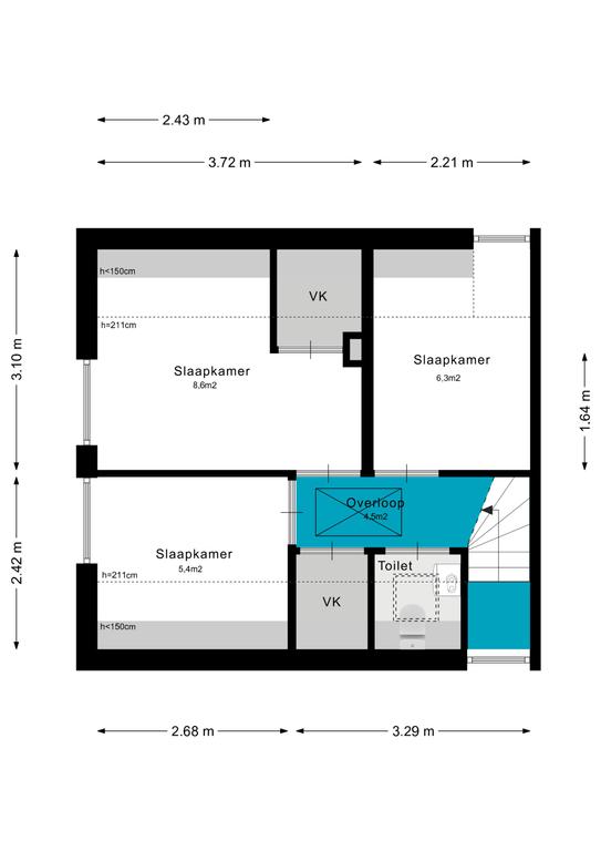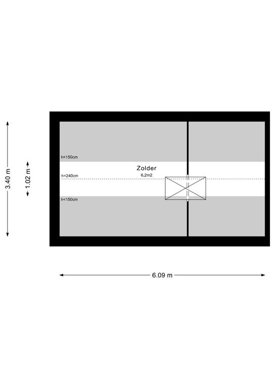 via vlizotrap te bereiken bergzolder. De bergzolder heeft stahoogte (nokhoogte 240 cm) en er is verlichting aanwezig.